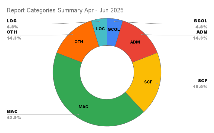 From April to June, the overall reporting rate remained steady at 2.7% of movements, continuing the stable trend we’ve seen over the last 18 months. This consistency shows strong engagement in our safety system, although we continue to encourage even higher levels of reporting to reach our target rate of 3.5%.