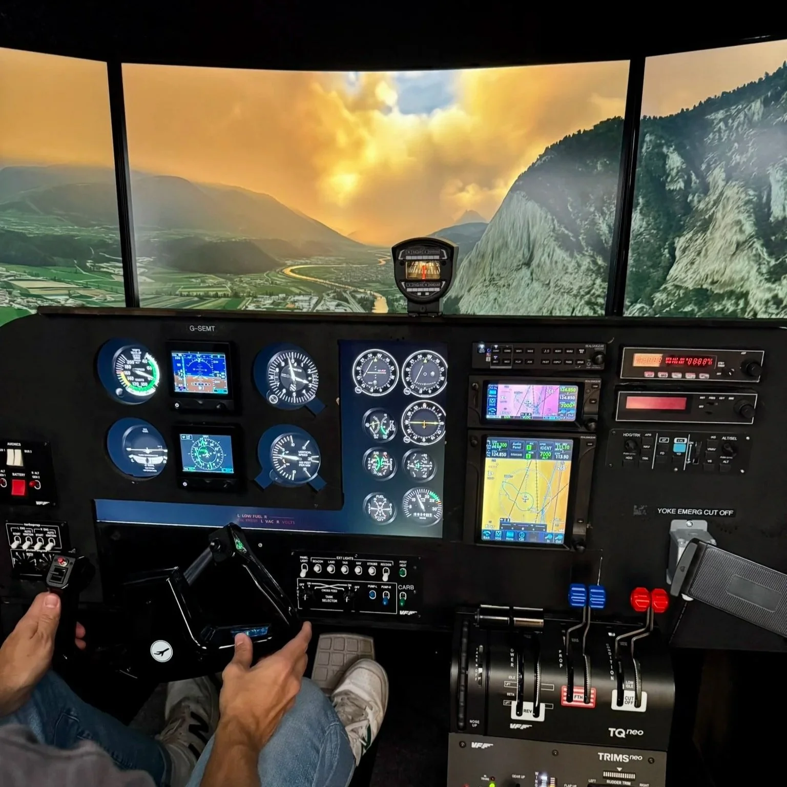Equipped with Garmin G5s, GTN650 and GTN750 avionics, the sim benefits from RNAV capability with an up-to-date international database. We can walk you through the fantastic arrangement of information at your fingertips with this modern technology.